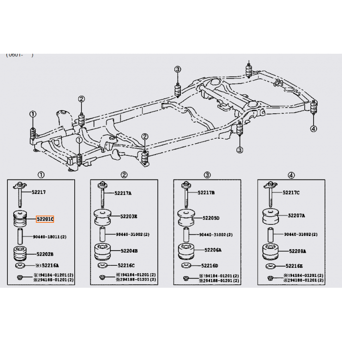 Подушка рами кузова Toyota 52201-35100 — оригінальна деталь кріплення кузова до рами Toyota / Lexus, яка застосовується на Prado 120, GX470, 4Runner і FJ Cruiser.