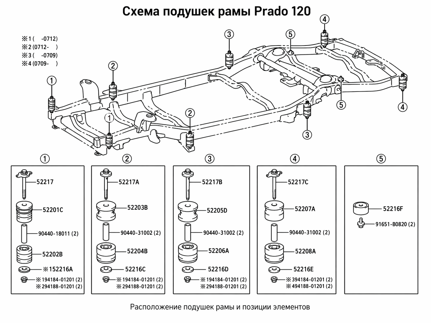 Toyota Land Cruiser Prado 120 — рамний позашляховик, у якому кузов кріпиться до рами через спеціальні гумометалеві опори. Саме їх власники найчастіше називають подушки рами прадо 120 або подушки кузова прадо 120. Ці елементи приймають на себе частину вібрацій, гасять удари та допомагають кузову зберігати правильне положення відносно рами.